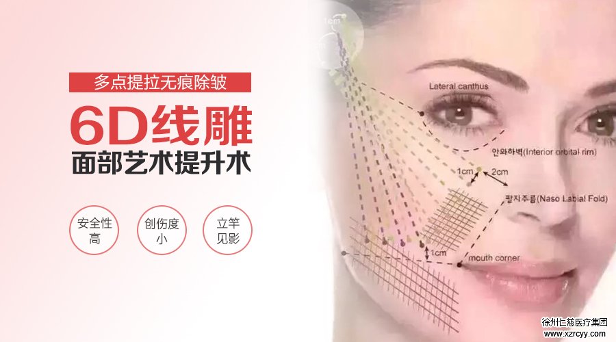 多点提拉无痕除皱 · 6D线雕面部艺术提升术,是用特制的导针将可被人体吸收溶解的蛋白线导入体表各层软组织内。利用其良好的提拉作用和力学平均分配,将松垂的面部组织复位提紧并促进胶原蛋白形成,达到支撑充盈、深层提拉、雕塑轮廓、胶原再生、紧致弹性、抵抗地心引力目的。