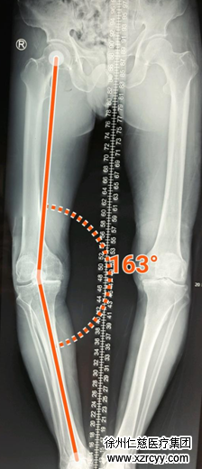刘师傅手术中计算机导航测量的左侧膝关节畸形程度,膝关节内翻16°,屈曲畸形15°。