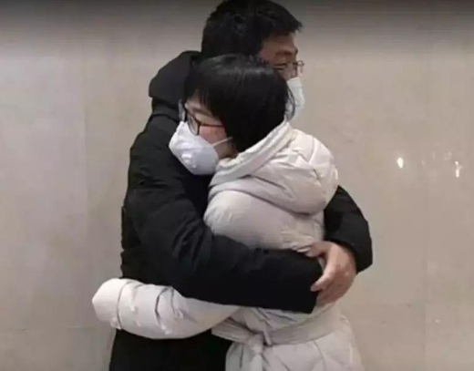 ▲ 杨卫东抱着妻子,嘱托她照顾好家里和孩子