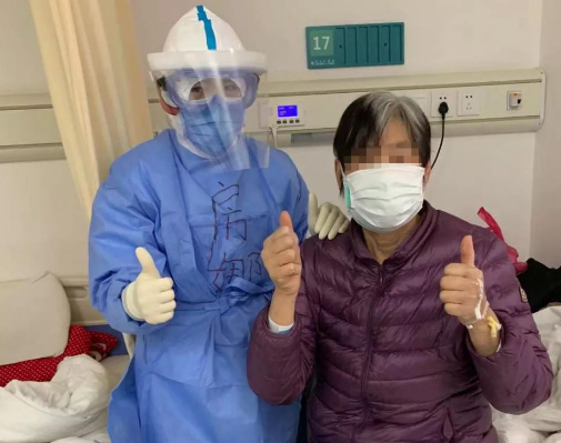 ▲ 房娜在武汉江夏区第一人民医院与患者合影