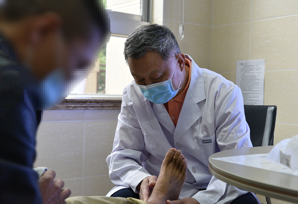 俞教授给男子做了检查,发现左脚伤情已经有好转。