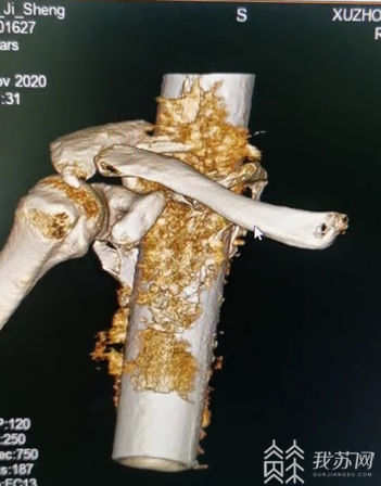 术后,患者在ICU持续观察,目前各项指征平稳,但是由于钢筋上有很多铁锈及水泥,术中虽彻底清创,但术后依然很容易出现软组织感染,毒素吸收导致的器官功能衰竭,还需要观察一段时间。且患者肺部挫伤严重,肋骨骨折及肩胛骨粉碎性骨折,需后期继续手术处理。