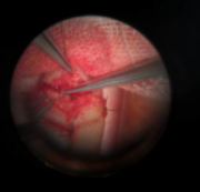 术中探查血管,指尖血管分叉以远断裂,在高倍显微镜下,分别给予吻合两个分支动脉血管及掌侧2根静脉,动脉的血管管径仅有0.2mm,手术难度极大。
