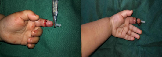 唐医生介绍,手术难度比较大,主要是患儿血管太细,需要非常高的显微外科技术。患儿的妈妈保指意愿非常强烈,我们当即决定为患儿行再植手术。现在患儿手术成功,手指活动非常灵活,功能恢复正常,家人十分满意。