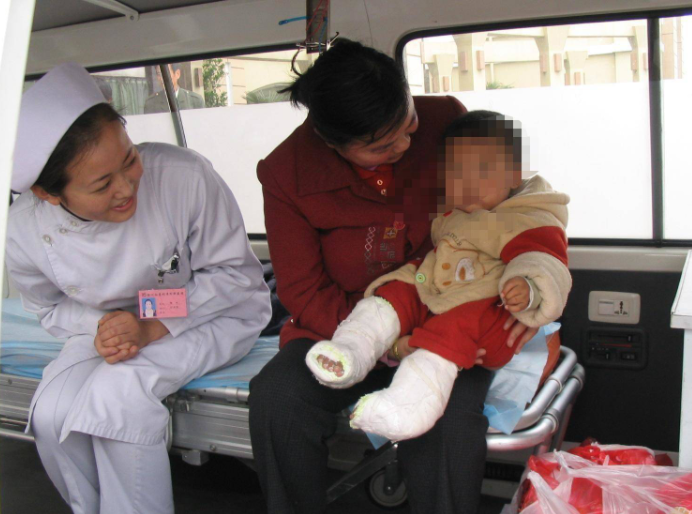 看着小宝一天天长大,夫妻俩的心情却日益沉重起来。为了给小宝看病,彭女士和丈夫四处求医问药,这让本不富裕的家庭更加拮据。2008年3月20日,彭女士和丈夫带着小宝来到了betway在线登陆。时任骨科副主任的石荣剑诊断小宝是双侧马蹄内翻畸形,这是一种先天性疾病,通过手术可以达到良好的效果,甚至可以治愈。考虑到彭女士一家的经济情况,院方研究后决定,减免小宝所有的医药费、手术费等,彭女士听后激动地泣不成声。三个小时的手术成功完成,小宝原来内翻高度畸形的双足基本恢复正常。