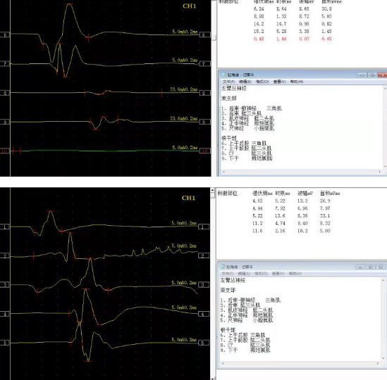 肿物取出后用术中肌电图生理检测臂丛神经呈现正常电生理表现,手术过程中很好地保护了臂丛神经。