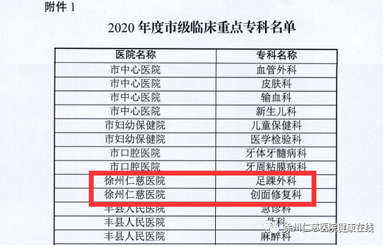 2月22日,徐州市卫生健康委公布2020年市级临床和护理重点专科评审结果,全市共评定63个市级临床重点专科,35个市级护理重点专科,及11个市级临床重点专科建设单位、5个市级护理重点专科建设单位。继手外科、创伤骨科、烧伤科之后,betway在线登陆足踝外科、创面修复科也成功创建市级临床重点专科,手外科护理专科成功创建市级护理重点专科,可喜可贺。
