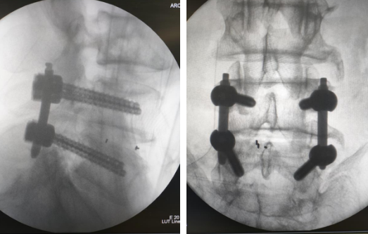 详细的术前准备后,尚军主任张冶副主任医师团队为老人进行了“腰椎后路减压+内固定+融合术”,术中,手术医生利用C型臂对患者进行三维影像扫描,图像被同步传输至手术机器人系统;进行L4/5椎弓根定位并在皮肤表面标记;在机器人的精确定位下置入导针,行L4/5椎管扩大减压处理,切除L4下关节突,L5上关节突,切除部分黄韧带,显微镜下摘除L4/5髓核,处理L4/5椎间盘及终板,在机器人辅助下,精准安装椎弓根钉,椎体后方植骨。手术切口仅3厘米,基本不造成患者肌肉软组织损伤,手术时间也大幅缩短。术后老人的腰痛和左腿的痛麻消除,在脊柱病区康复,很快能下地行走。