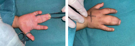 作为儿童手部先天畸形的一部分,并指畸形可单独出现,或在许多综合征中出现, 伴发其他多种畸形,如多指畸形、屈指畸形、短指畸形、先天性指间关节融合、骨融合等。在很多患儿中,我们发现并指多为双侧,也就是双手都有并指,而且两侧的并指表现不一定相同。中、环指并在一起的情况是最为常见的。