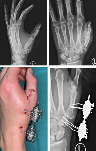 Ilizarov技术应用几乎涵盖了所有骨科领域,甚至一些交叉学科。如骨与软组织缺损、骨不连、畸形矫正、骨关节病、器械构型改进、糖尿病足等。我院手外科朱辉主任接触Ilizarov外固定支架后早期的一些临床应用病例,解决了在淮海经济区被认为时非常棘手的问题,包括手部掌指骨的开放或闭合骨折;手指、手腕的再植;骨不连、畸形愈合、假关节、截止残端、发育不良;先天短缩畸形,先天并指畸形及关节挛缩等。使用Ilizarov显微手足外固定器(IMEF)治疗掌、指骨骨折,Ilizarov显微手足外固定器的优点突出,固定牢固,操作方便,可以避开血管神经肌腱、不影响关节活动,构型更加个性化、多样化。
