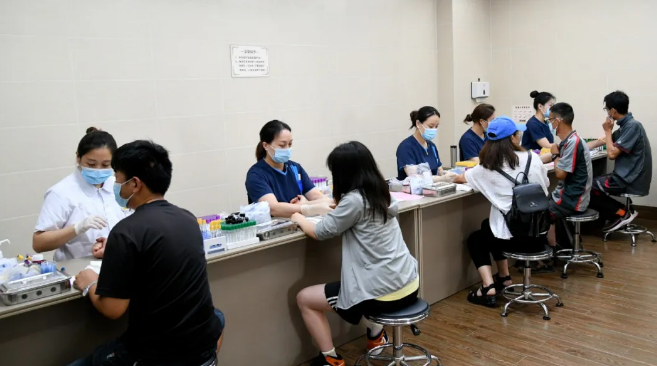 活动当天,体检大厅人头攒动,医护人员详细地为“八大群体”职工代表介绍了体检流程,耐心解答各类提问,并引导他们有条不紊地进行各项身体检查。此次赠送的健康体检内容全面,除常规体检项目外,根据“八大群体”职业特点,还增加了特殊检查项目,如针对快递员、送餐员派件时频繁上下楼,增加了膝关节正侧位 X 光片检查。