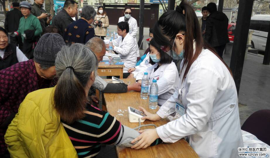 3月19日上午,位于徐州鼓楼区王场新村的中心广场里已聚集了一批正在晨练的居民,看到正在铺设义诊设施的工作人员,大家纷纷围拢过来。全程导医网和betway在线登陆的工作人员为他们准备好板凳,让老人坐在旁边等候听诊。