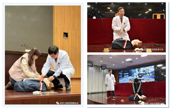 理论培训结束后,周主任又向学员教授了心肺复苏的技能。周主任一边讲解心肺复苏的具体流程,一边进行动作示范。