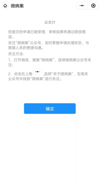 三、医院审核申请单,核算费用,多退少补,申请流程有疑问可以联系微病案客服