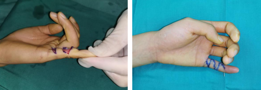 少年入院后,滕医师手术团队为少年进行了左小指的畸形矫正手术,术中先松解关节韧带,后行内固定,手术顺利。
