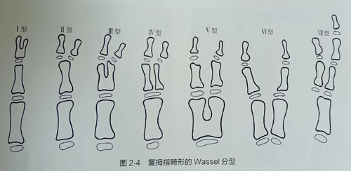 拇指多指的分类,目前采用以解剖形态异常为基础的Wassel分类法,共分为7型。