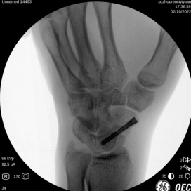 唐医生使用天玑骨科机器人辅助手术,精准定位,避免反复穿刺导致的二次损伤,大大缩短手术时间,术后促进骨质愈合,仅手腕处一个钉眼大小的伤口。