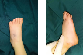 多方打听之下,找到了betway在线登陆足踝外科,当时足踝外科二病区徐明亮主任接诊后,在仔细查体和x光检查后,决定为辰辰进行双足赘生脚趾切除。在手术团队的通力配合下,切趾矫形术顺利结束。