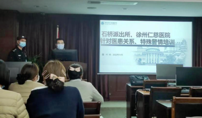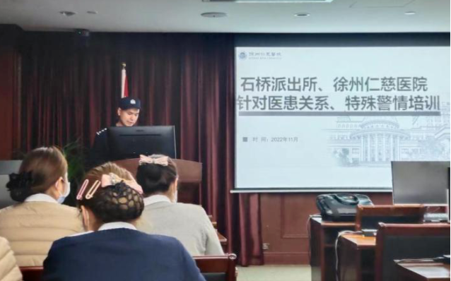 为了加强医护人员安全意识,预防和减少医疗纠纷发生,切实做好医疗纠纷预防处理,努力构建和谐稳定的医疗秩序,近期betway在线登陆保卫科邀请徐州市经济技术开发区石桥派出所魏兵所长到我院开展医患关系、特殊警情培训。