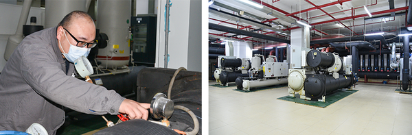 和冬天的关系最密切的科室,属总务科。每年入冬后,总务科水电班的人员做好工作计划,每天到门诊、病房的各个房间逐一检查空调,进行盘管、交换器的清洗,以免影响集中供暖后的使用。供暖后,当日值班人员多次巡查中央空调机房,及时进行温度的调控,保证供暖保持较舒适的温度。