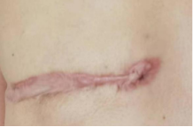 但醒来还是要接受现实,根据其肿瘤学特性,医生给出的方案是全乳腺切除+腋窝淋巴结清扫方案,她在慌乱、恍惚中无奈的接受了这一方案,本来想着孩子大了,切就切了吧,保命要紧。可谁知道,失乳之痛未平,切除后随之而来的是增生的瘢痕像刺入人生的一把刀,反复溃烂,发痒折磨着她,仿佛时刻在提醒她已经失去了自己的一侧乳房。