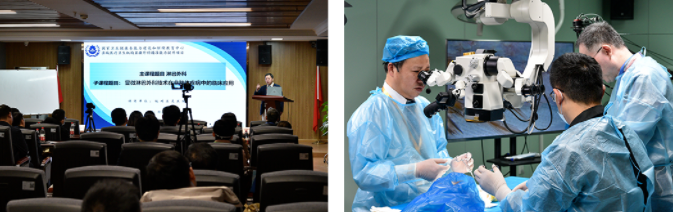 手术直播环节,湖南省肿瘤医院李赞主任为大家演示了腹壁下动脉穿支皮瓣切取手术,随后又与上海交通大学附属第九人民医院冯少清主任一同演示了腹股沟淋巴结皮瓣手术;浙江台州恩泽医疗中心顾仕林主任与西安兵器工业521医院梁高峰主任一同进行了上肢淋巴管-静脉吻合术。
