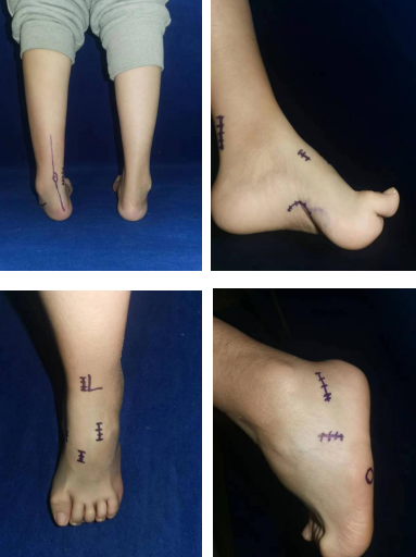 2023年1月中旬,女孩在母亲的陪同下来到足踝外科,曹广超主任、陈占斌医生为其先设计了左足矫形方案。术中进行跟腱的延长、肌腱的转位、截骨矫形以改善足弓,减轻疼痛。手术顺利。