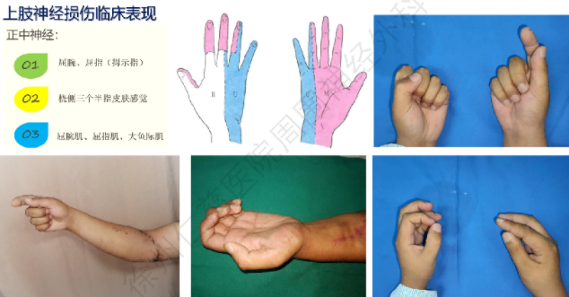 (2)感觉功能障碍:拇示中环指感觉麻木。