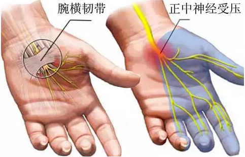 神经卡压常会导致疼痛、刺痛、麻木或无力。常见疾病有腕管综合征、肘管综合征及胸廓出口综合征等。