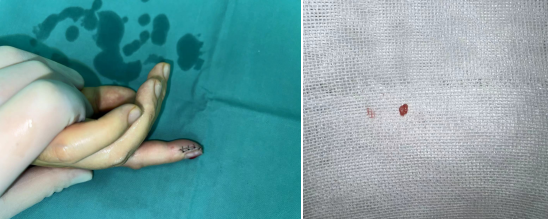 结合B超结果,黎章灿医生明确诊断为手部血管瘤。随即,在黎章灿医生、魏英华医生的安排下,仅半小时的时间,就完成了微创手术,将手指上的“黄豆”取了下来。