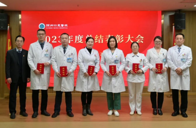 大会对2023年做出优异成绩的集体和个人进行了表彰,包括医疗质量优秀奖、医技质量优秀奖、优秀护理团队、优秀职能部门、优秀后勤班组、优秀带教科室等19个优秀团队奖;服务之星、岗位之星、党工之星、优秀医疗科主任、优秀医技科主任、优秀行政后勤科主任、优秀护士长、优秀消防网络管理员、优秀带教老师等219个优秀个人奖;科学技术奖、新技术引进奖、论文发表奖、课题结题奖、专利奖等53个科研类个人奖;医院发展贡献奖、五级电子病历、互联互通四甲专项奖等3个年度专项奖。