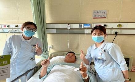 晨光熹微,倾谢一地的温柔暖意,王大哥忧愁的眼神也升起一丝慈祥和蔼的笑意我心里也是舒了一口气,说着将准备好的流食用注射器小心翼翼的送到王大哥的胃内,这一幕像极了小时候生病时,母亲轻言细语的哄我吃药的场景,现在的王大哥,同样也需要鼓励和陪伴来树立信心。在之后的日子里,每次交班查看王大哥情况,帮助他翻身时,他都特别的配合,每天笑呵呵的特别乐观。慢慢地,王大哥的病情得到了好转,胃管拔掉了,能简单的吃点东西了,王大哥别提有多高兴了,临走那天,王大哥特意找到我,握着我的手说:“谢谢你们,如果没有你们我也不会康复的那么快。”我们还一起拍照留念。