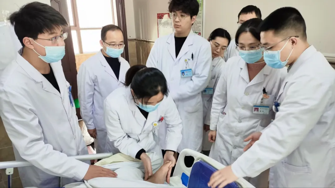 中医康复科联合康复治疗部针对刘大爷的情况,制定了一系列科学系统的中西医结合治疗。通过运用针灸手法,刺激相关穴位,以促进肺部的血液循环和痰液排出。除了对症治疗坠积性肺炎,医疗团队根据刘大爷跟腱挛缩的情况,为刘大爷安排了使用站立床的训练,帮助患者改善血液循环,促进下肢及全身新陈代谢。