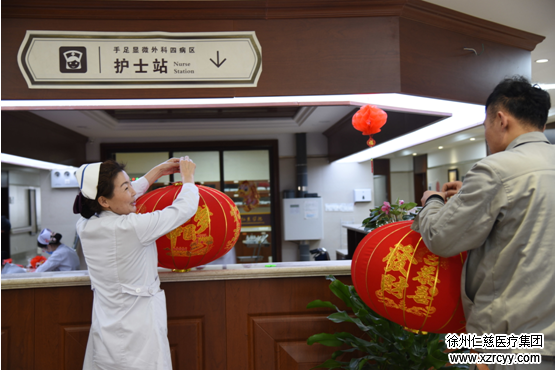 护士忙,我帮他们挂灯笼