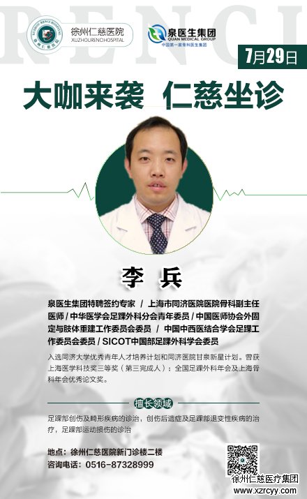 本月29日(下周六),我们将再度迎来一位足踝外科大咖——泉医生集团特聘签约专家、上海市同济医院骨科副主任医师李兵。