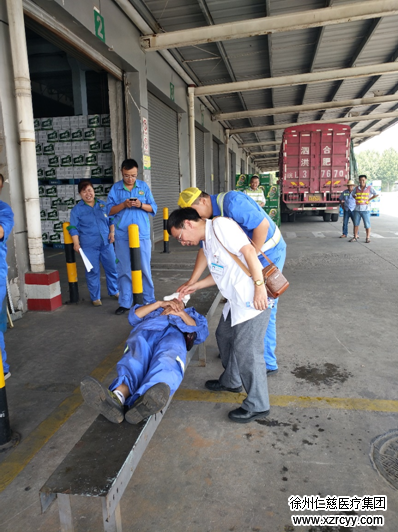 在安全讲座结束后,青岛啤酒厂的领导又组织工人在厂内实地进行安全演习,分别饰演中暑晕倒、意外烫伤、食物中毒三个场景,让工人们将刚刚课堂上学习到的知识可以活用到日常生活中。