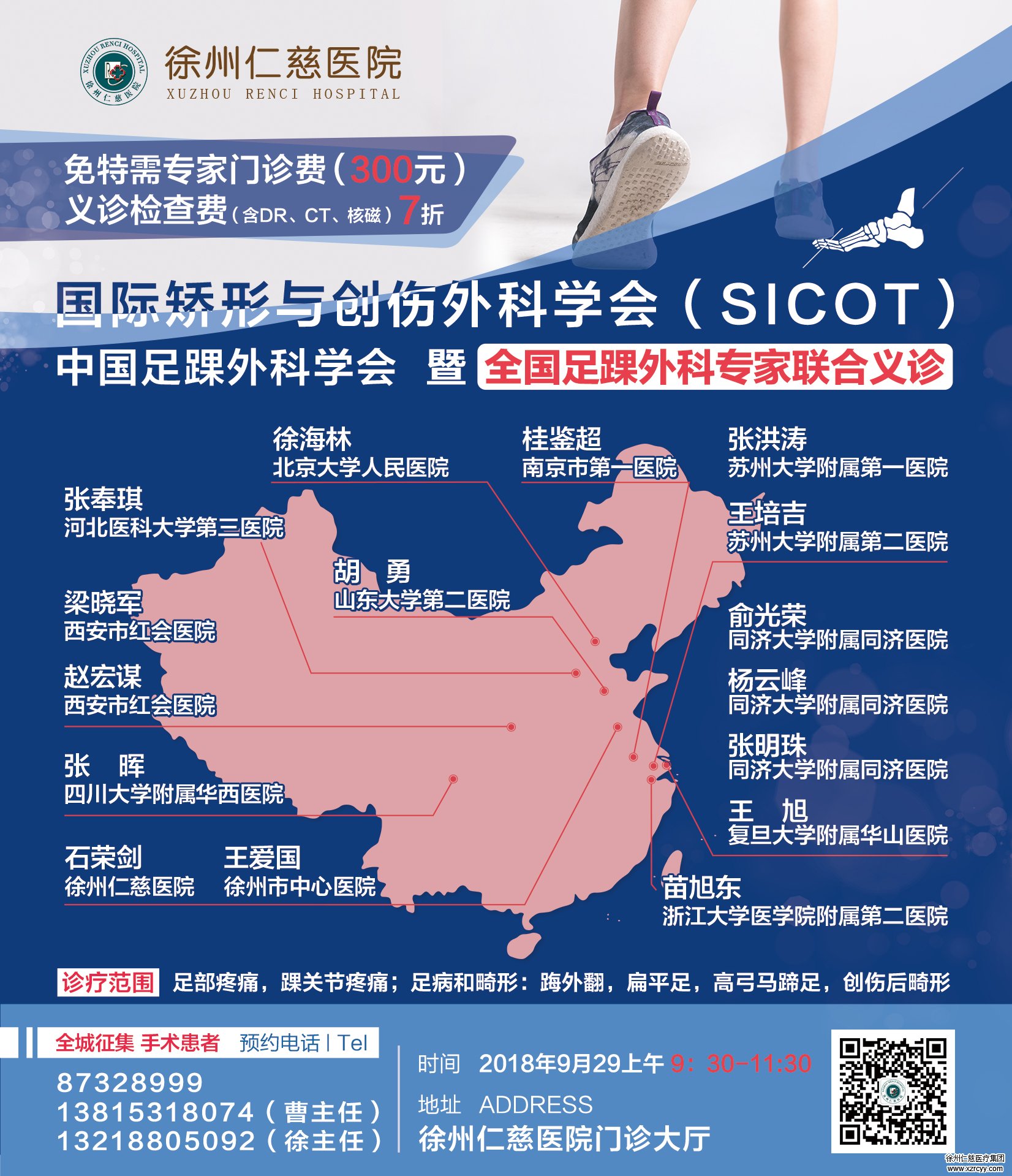 为持续提升徐州足踝外科学专业发展,促进淮海经济区执业医师学习成长,由国际矫形与创伤外科学会(SICOT)中国足踝外科学会主办,