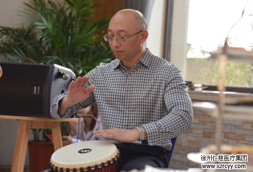 常务副院长范学良带头敲起了非洲鼓,将茶话会的气氛活跃了起来。