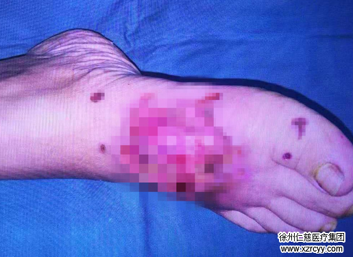 必威官方首页官网betway慢性难愈性创面修复外科曹天勇医生认真检查着宋阿姨的伤情,得出诊断结果:患者右足背、足内侧及小腿远端胫前见多发凸起疣状物,右足化学药物烧伤致皮肤坏死,足背片状面积约6cm×7cm皮肤坏死创面,干瘪,初步诊断右足背、足内侧、右小腿胫前远端皮肤坏死伴感染。