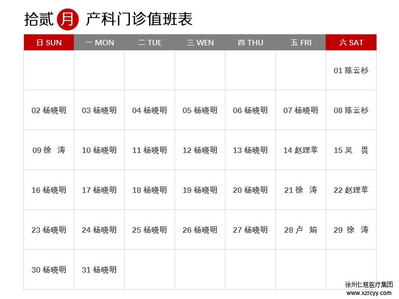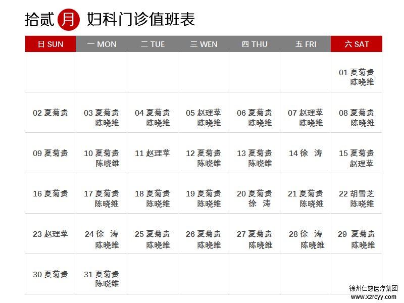 RENCI 12月门诊值班表