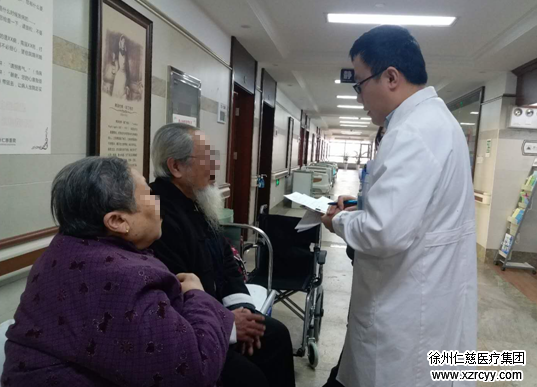 今天,内科周其华主任重点查房脑梗塞、高血压、糖尿病患者。75岁的李大爷因“急起头晕伴口角歪斜两天”入院,诊断为脑梗死。病情稳定了,老人担心面部什么时候能正常,周主任动作生动地给他解释面神经麻痹的治疗与恢复期。