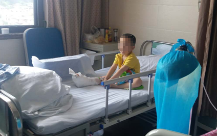 跟林林同一病房的坤坤(化名),今年也才3岁10个月,孩子是奶奶带他外出时受伤的。当时,坤坤坐在奶奶的电动车后座上,奶奶听到孩子的大哭声才停下来,发现孩子的右脚已经卷进了后轮,拉不出来,一群热心的路人上前帮忙,硬把孩子的右脚从后轮里拽了出来(其实,这个动作是非常错误的!),孩子右脚面一大块皮肤软组织被蹭掉,哭得撕心裂肺。