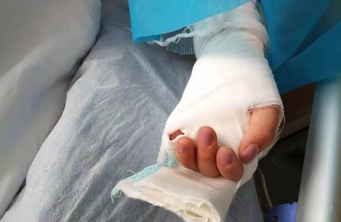 手部受伤后,王女士想自己处理下,结果发现伤口状况不允许。她第一反应就是想拔掉鱼刺,拔了两次,稍微动了一下感觉太深了,她紧接着就喊家人去医院。