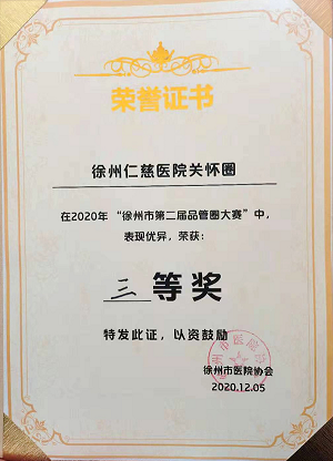 12月5日,2020年“徐州市第二届品管圈大赛”在徐州医科大学附属医院举行。我院烧伤科被院护理组选送的“关怀圈”经过激烈角逐,最终获得了徐州市第二届品管圈大赛三等奖。作为唯一一家入选的民营医院,彰显了我院品质管理工作的稳定实力。