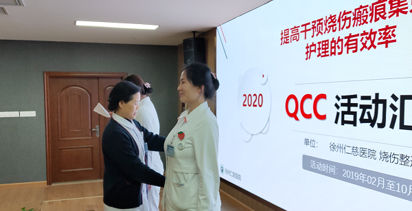 本次大赛是徐州市医协会举行的第二届品管圈大赛。全市二甲以上医院共200多个圈组参加了比赛,我科护士长王明月、护师师静和徐雯婷三位参赛选手代表“关怀圈”团队,以“提高集束化护理干预烧伤瘢痕的有效率”为主题进行现场汇报。通过电脑演示PPT、演讲和情景表演共八分钟的现场展示,我科选手以饱满自信的精神面貌、默契的配合和专业的讲解示范,分享了我科在品管圈活动中取得的成果和收获的经验。