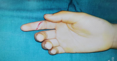 “医生您好,快帮我看看,我闺女的手指怎么不能弯曲了?”一位妈妈带着10岁的女儿雯雯(化名),来到了betway在线登陆手外科门诊。接诊的唐洪伟医生仔细询问病史,并大体了解了病情:原来,5天前,雯雯在家用“美工刀”削苹果时,不小心切伤了右示指。当时伤口不大,出血也不多,妈妈带她去村医务室用碘伏消毒后,包扎好就回家了。“我以为是皮外伤,没有当回事,就在今天早上发现雯雯的伤口有些红肿,而且雯雯说她的右示指不能弯曲了,我这才着急带孩子来医院。”