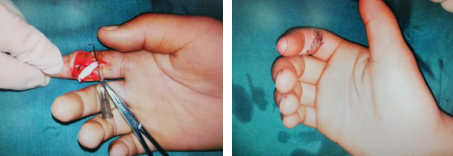 唐医生通过查看病情和体格检查,判断雯雯的右示指屈肌腱断裂了,必须马上手术,不能再耽误了,否则将来手指的功能会很差。唐医生详细地跟雯雯妈妈交代了病情后,给雯雯办理了住院手续,安排手术。
