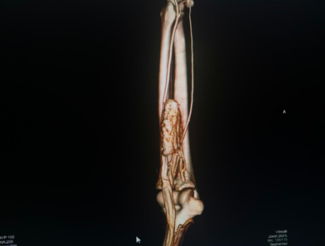 近日,我院手外科一病区收治一例血管瘤患者,该患者血管瘤位置在前臂,血管瘤体积较大,且位置较深。