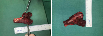 经过一系列的术前检查、准备,李主任手术团队为患者进行左前臂肿物切除术。术中切开,探查见肿瘤浸润桡侧腕屈肌,与桡动脉有少量血管桥接,将肿物与周围组织分离,完整切除肿物,测量大小约5.5cm×4.5cm。手术顺利,肿物送病理,病理结果显示为血管瘤。