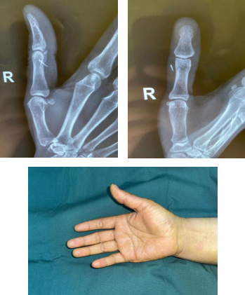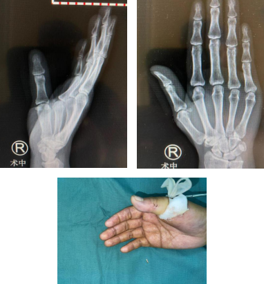 手术开始,熊医生手术团队术中仅做了一个不到1厘米的切口,顺利取出瓷片异物,术后复查右手X线,X线示:右拇指未见异物存留。术后第二天,王大姐非常激动地说: “非常感谢熊祖国医生高超的手术技术,这么小的切口也能完整的取出异物。”